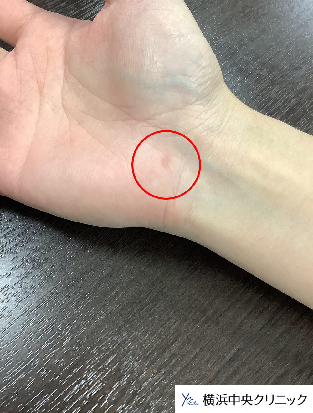 - ほくろを除去した部分は一時的に表皮がない状態です。新しい表皮ができるまでは、バイ菌が入らぬよう保護テープを貼ります。