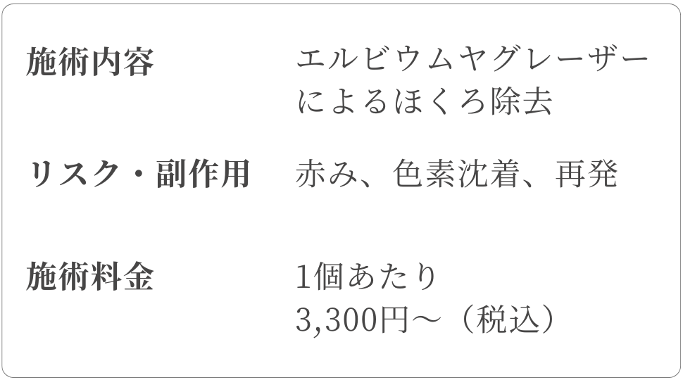 - 浅いホクロの場合は1度で除去できますが、ホクロが深い場合は複数回の治療が必要となります。